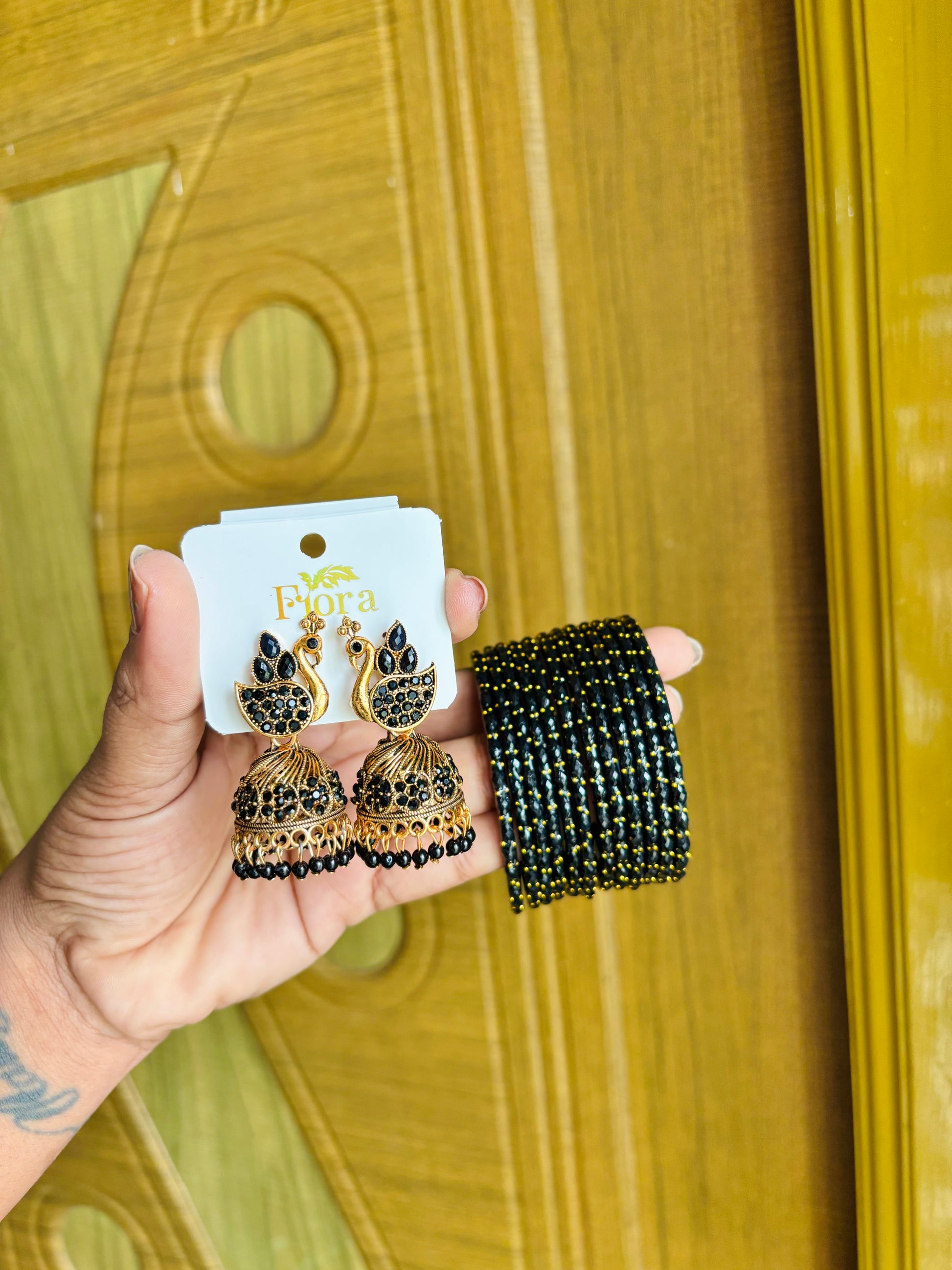 1 set of jhumka + 1 dozen of raindrops crystal